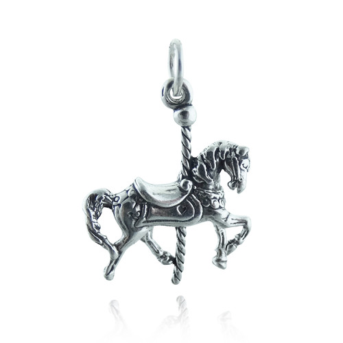 Description Carousel horse charm is made of genuine 925 Sterling Silver Stamped 925 3D (three-dimensional) charm Measurements: 22mm x 19mm x 5mm (7/8” x 3/4” x 1/4”)